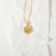 Inspired by ancient traveller's coins from around the world, the Athena coin pendant is part of our goddess collection. Majestic Athena emanates power and authority, she is often depicted wearing a helmet and a shield, which is said to have turned her enemies into stone.