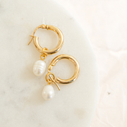 - 9 carat yellow gold hoops with a dazzling freshwater pearl charm